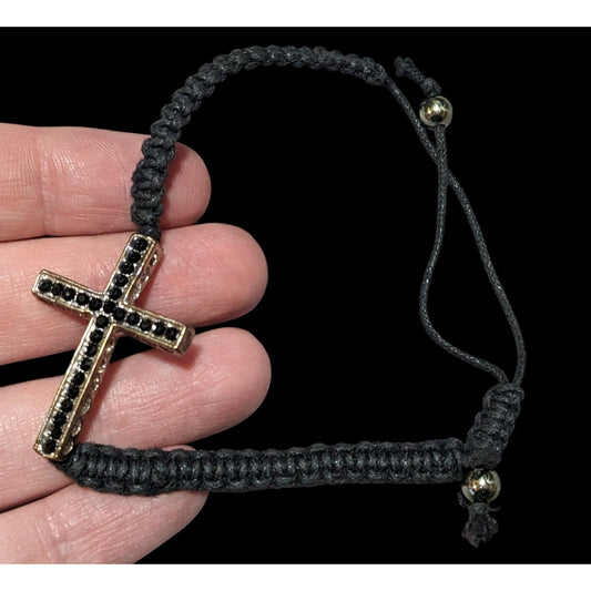 Gothic Cross Black And Silver Tone Rhinestone Adjustable Bracelet
