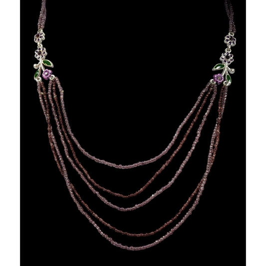 Retro 80s Style Purple And Silver Chunky Beaded Multilayer Necklace
