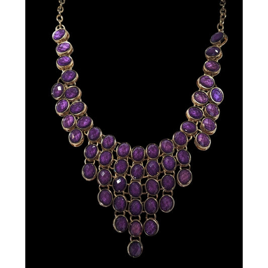 Vintage Regal Purple And Gold Tone Gemmed Bib Necklace