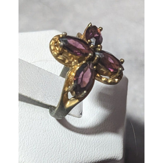 Vintage Elegant Floral Purple Stone Gold Tone Ring Size 6