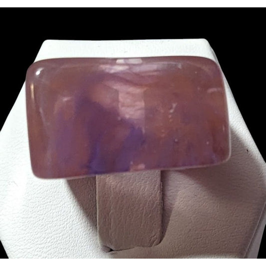 Chunky Abstract Pink And Purple Swirl Retro Statement Ring Size 5 3/4