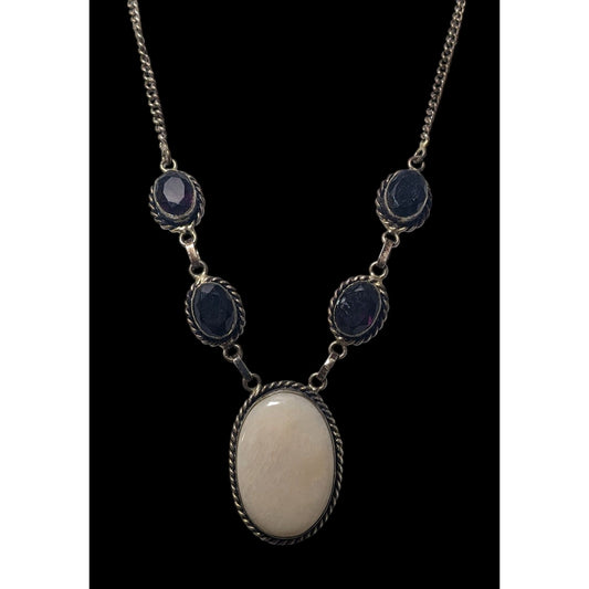Vintage Sterling Silver Multi Gemstone Romantic Necklace