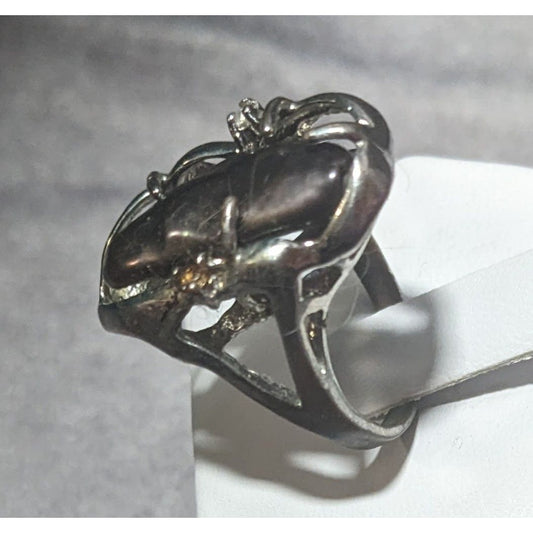 Vintage Purple Encased Silver Tone Cage Ring With Clear Gem Accents Size 8