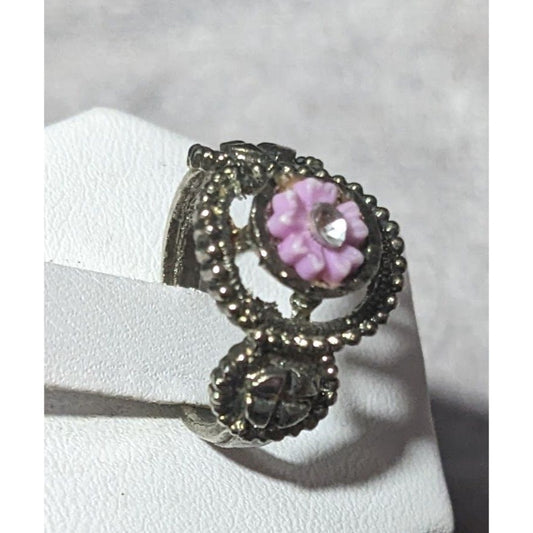 Purple Floral And Silver Tone Fashion Ring Size 4 1/2