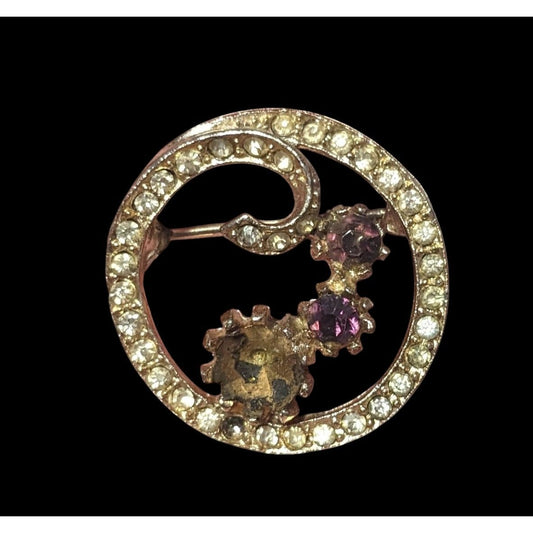 Vintage Floral Rhinestone Gold Tone Brooch
