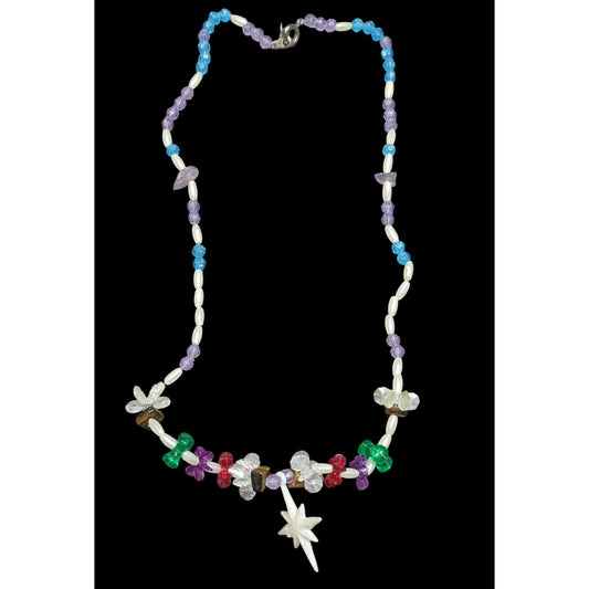 Vintage Handmade Colorful Beaded Necklace With Star Pendant & Tiger Eye