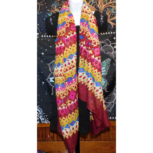 Bright Rainbow Geometric Striped Lightweight Scarf