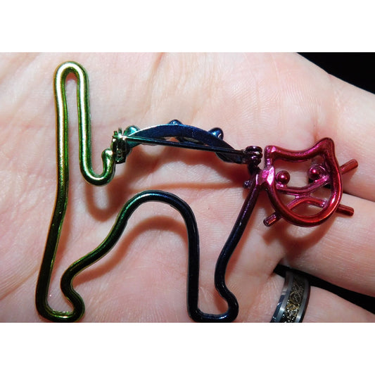Vintage Rainbow Anodized Wire Cat Brooch