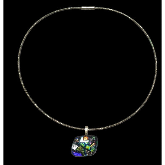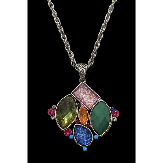 Rainbow Enamel Rhinestone Owl Pendant Necklace