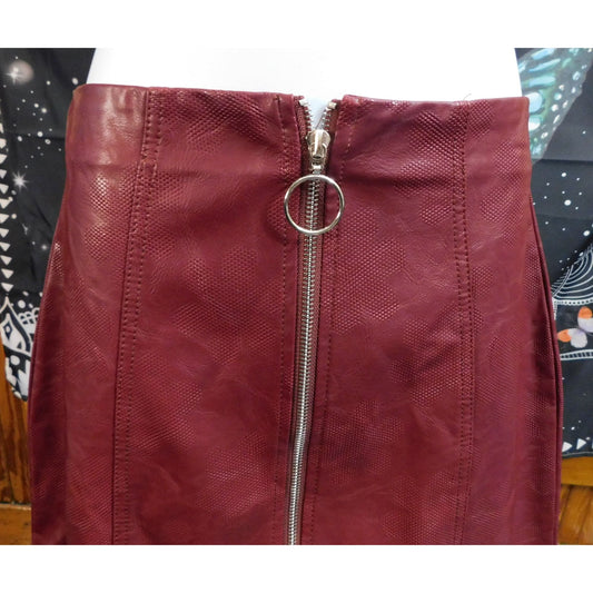Shinestar Faux Leather Burgundy Mini Skirt