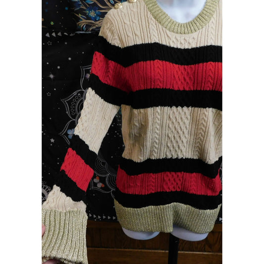 Preppy Sweewe Paris Cable Knit Striped Sweater