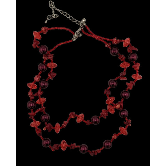 Vintage Red Beaded Glass Shell And Pearl Beaded Necklace
