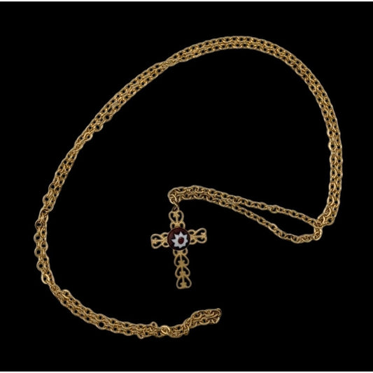 Vintage Religious Dainty Cross Necklace Gold Tone With Italian Glass Flower