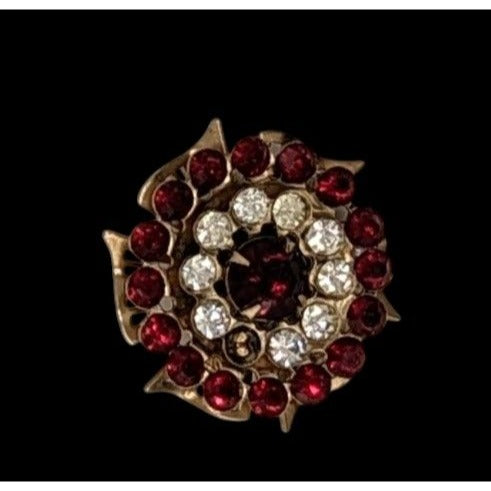 Vintage Regal Floral Brooch Gold Tone With Red And Clear Gems