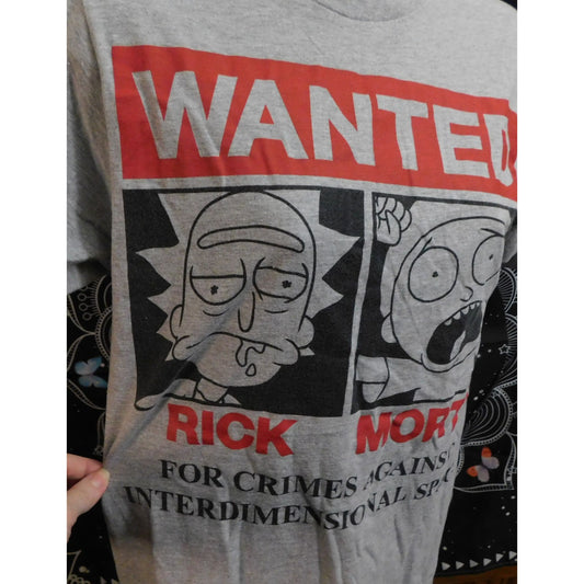 Rick And Morty Wanted Tee Grey With Red And Black Print