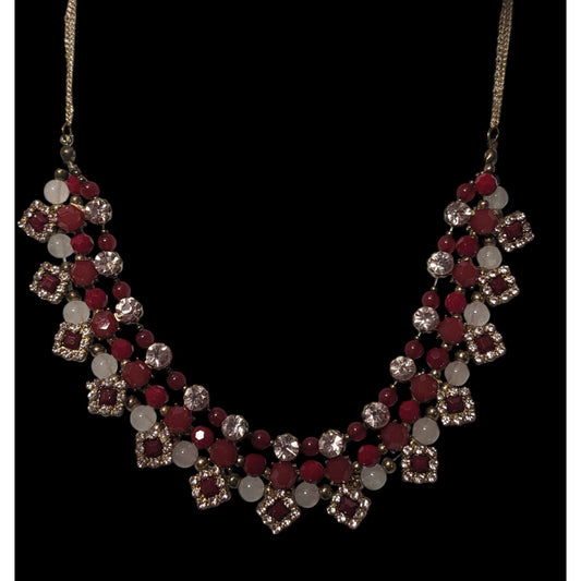 Elegant Glam Red And silver Rhinestone Statement Necklace