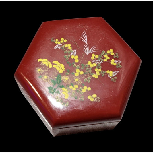 Vintage Floral Red Plastic Hexagonal Lidded Trinket Box