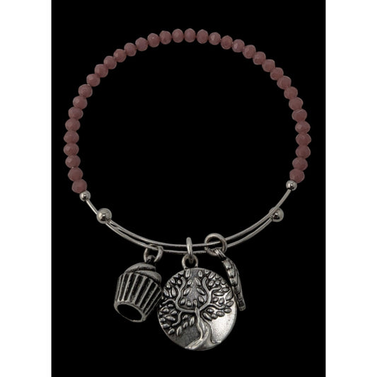 Earth Angel Charm Bracelet With Glass Beads & Silver Tone Charms
