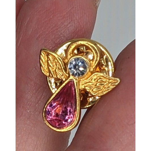 Vintage Angel-Shaped Gold-Tone Pin With Pink & Clear Rhinestones