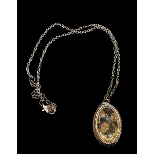 Vintage Silver Tone Oval Cross Pendant Photo Holder Necklace