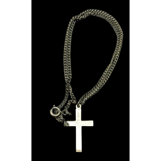 Simple Silver Tone Distressed Cross Necklace