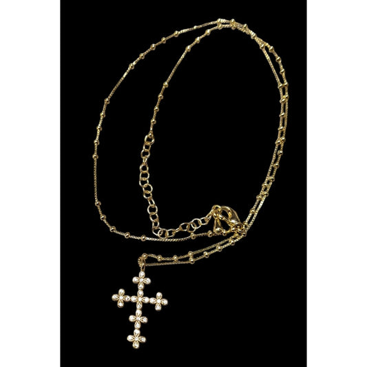 Dainty Minimalist Gold Tone Gemmed Cross Necklace