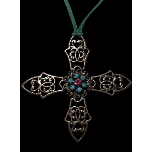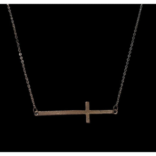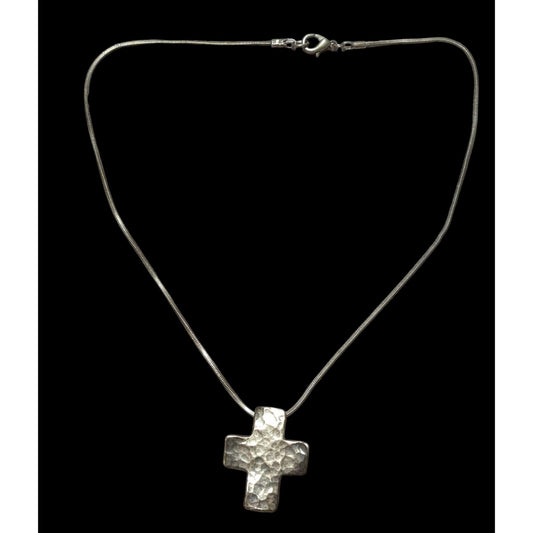 Vintage Sterling Silver Hammered Oxidized Cross Necklace