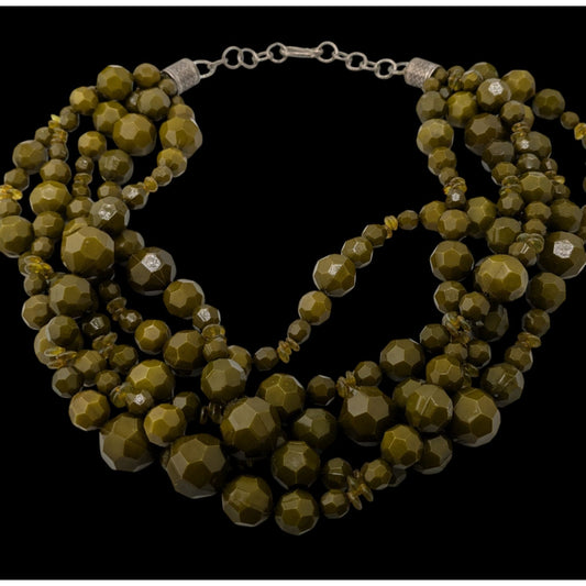 Vintage Olive Green Multi-Strand Faceted Beaded Necklace