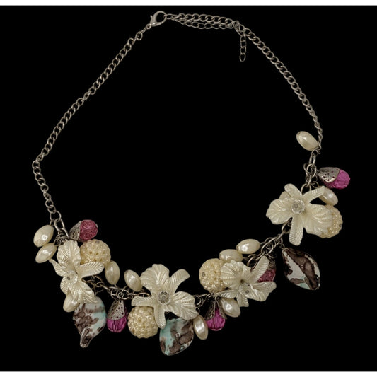 Vintage Fairycore Floral Statement Necklace With Mixed Beads And Charms