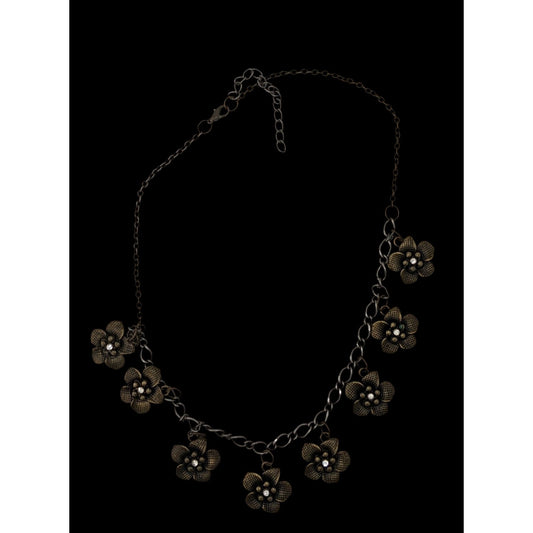 Boho Glam Flower Charm Necklace With Antique Gold Finish