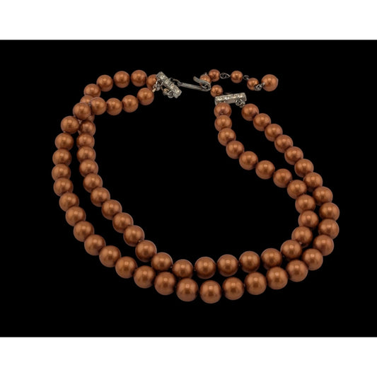 Vintage Glam Copper Tone Dual Strand Faux Pearl Beaded Necklace