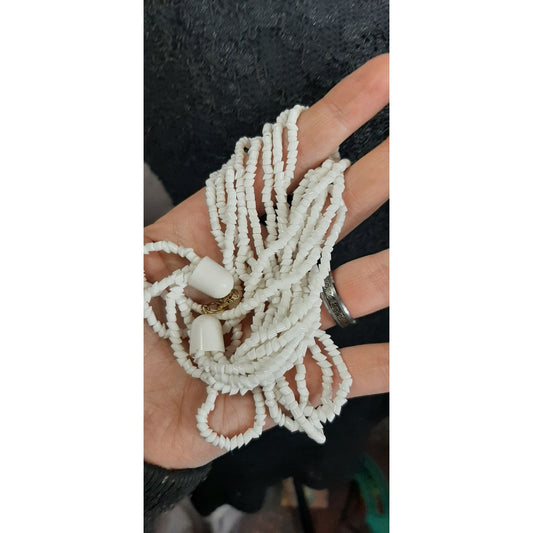 Vintage Retro White Beaded Chain Necklace With Gold Tone Accents
