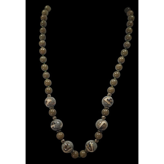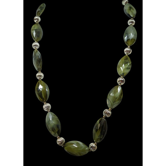 Retro Mottled Green And Silver Tone Beaded Necklace