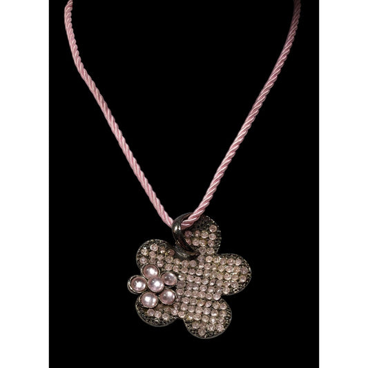 Vintage 90s Retro Pink Flower Pendant Necklace