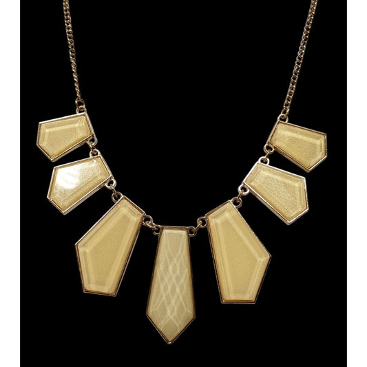 Geometric Shimmer Cream Faceted Graduated Bib Necklace