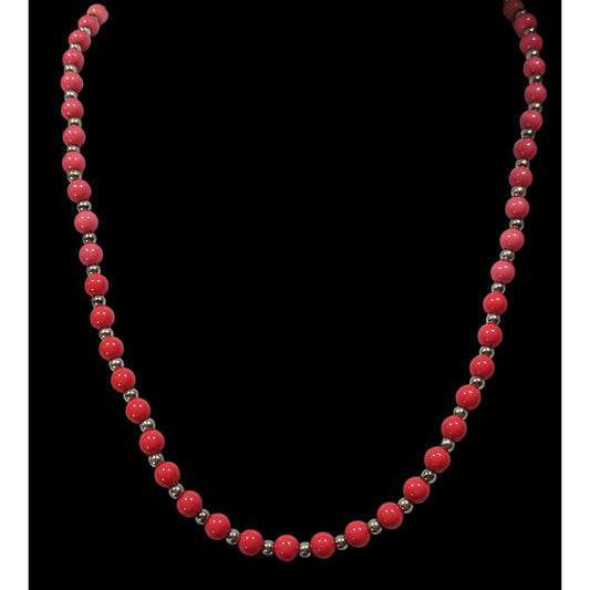 Vintage Pink And Red Beaded Necklace With Silver Tone Accents