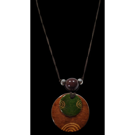 Retro Bohemian Painted Wooden Disc Pendant Necklace