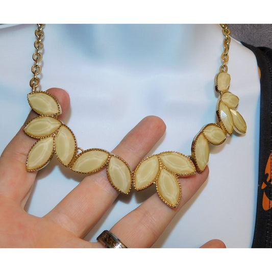 Retro Cream Shimmer Floral Leaf Costume Necklace