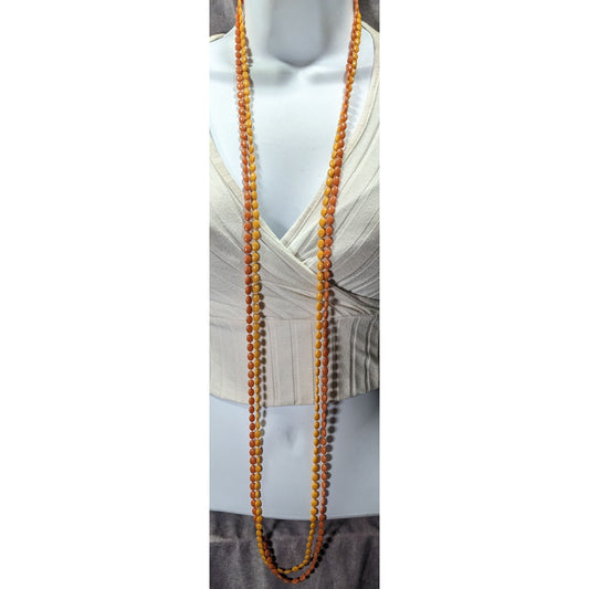 Retro Orange Beaded Silver Tone Link Opera Necklace