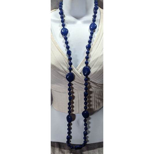 Chunky Retro Dark Blue Beaded Opera Necklace