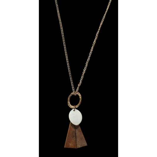 Geometric Abstract Wood And Shell Pendant Necklace
