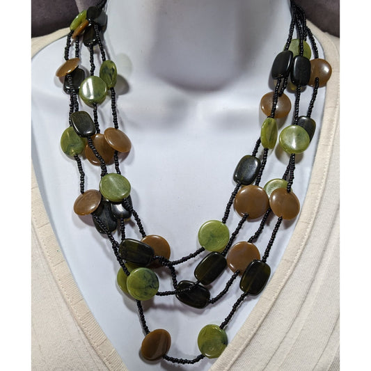Retro Brown And Green Disc Beaded Layered Necklace