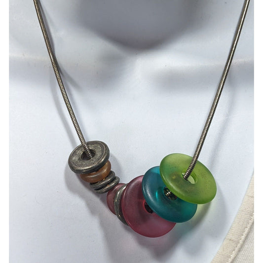 Rainbow And Silver Tone Slide Disc Charm Necklace