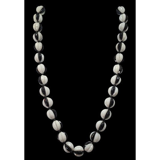 Vintage Black And White Hollow Faceted Beaded Necklace