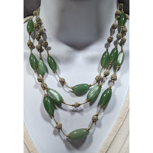 Vintage Liz Claiborne Green Moonglow Lucite Layered Knotted Necklace