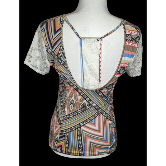 Mary Cool Paris Rainbow Geometric Lace Back Top
