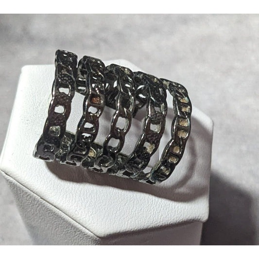 Grunge Punk Gunmetal Tone 5 Layer Chain Style Ring Size 5 1/2