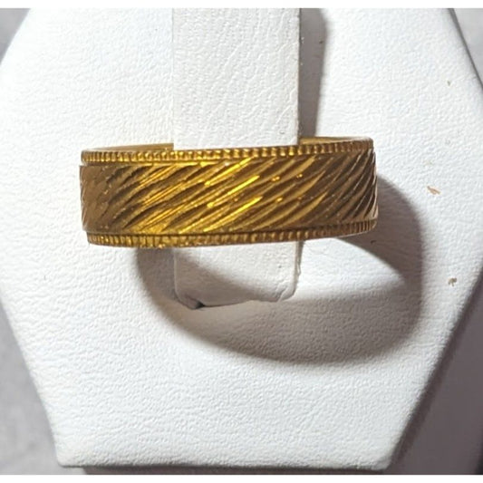 Bright Gold Tone Etched Fashion Ring Size 6 1/2
