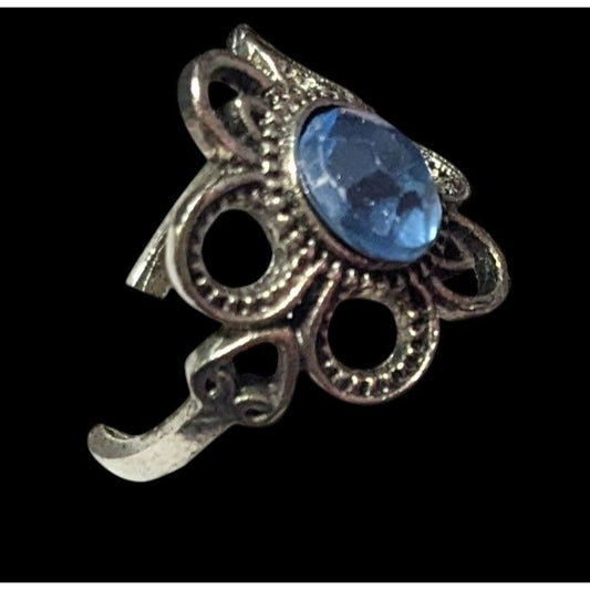 Casual Silver Tone Blue Stone Adjustable Ring Size 6 1/2
