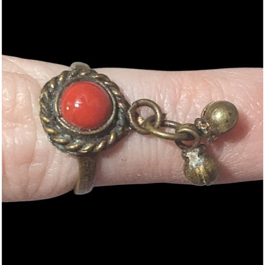 Vintage Bohemian Brass Charm Ring With Red Gem Size 6